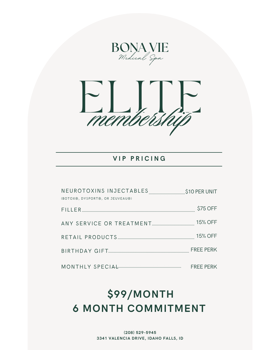 Confident. Glowing. Consistent.Looking for a med spa membership Idaho Falls women trust for real results? The Bona Vie Membership supports women who take their glow seriously and invest wisely in their beauty. For $99 per month with a 6-month commitment, you unlock exclusive pricing, priority perks, and monthly beauty credit added directly to your Bona Vie Wallet. Use it toward services, stack it for something bigger, or save it for when you’re ready. This isn’t a fee — it’s future glow.